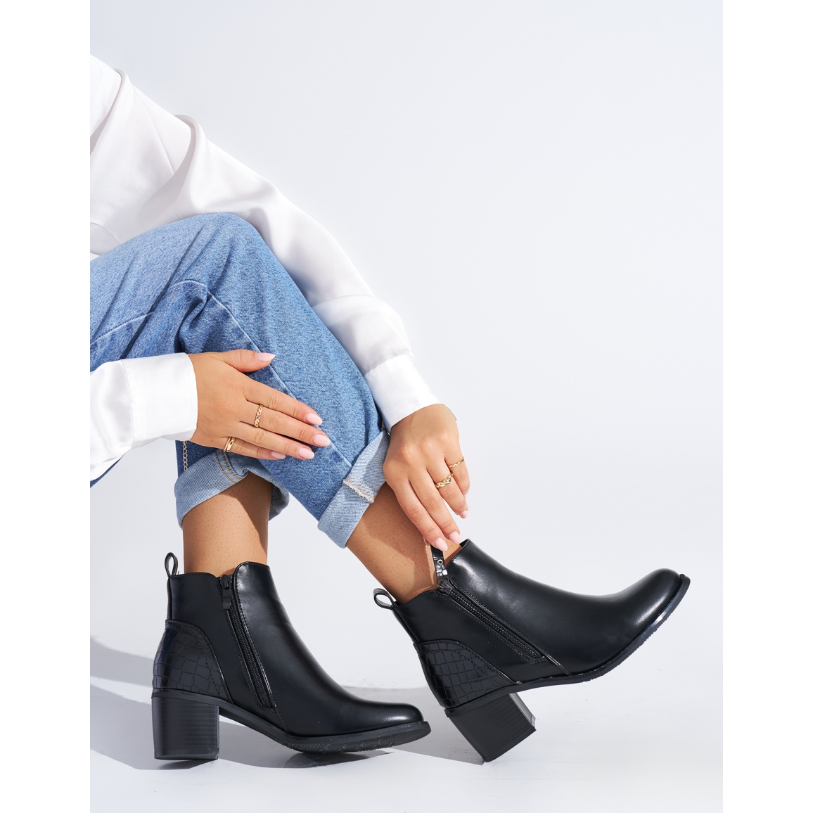 A 6 cm -es magas sarok, a posta alakú, elegáns akcentust ad, és ugyanakkor lehetővé teszi a kényelmes mozgást. A csizmákat cipzárral rögzítik, ami megkönnyíti a felhelyezést és a felszállást.