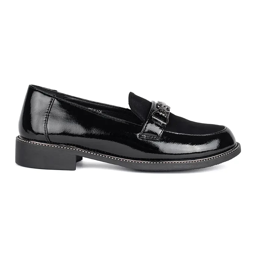 Fedezze fel az eleganciát és a kényelmet a fekete nők mokaszinjaival egy jó hírű márkából. Ezek az elegáns cipők tökéletesen kombinálják az alkalmi, klasszikus és elegáns megjelenést, ami minden nap nagyszerű választássá teszi őket. Vonzó formatervezésük javítja a lakkozott ökológiai bőrt és egy hatékony láncot, amely karaktert ad nekik.