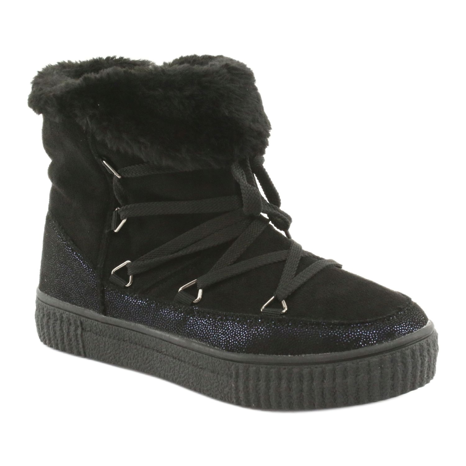 A modern és praktikus hócsizma Az American Club ES48 ideális javaslat azoknak a lányoknak, akik értékelik a stílus és a kényelem kombinációját. A klasszikus fekete modell, finom, csillogó sötétkék akcentussal tökéletesen illeszkedik a téli stilizációkhoz.