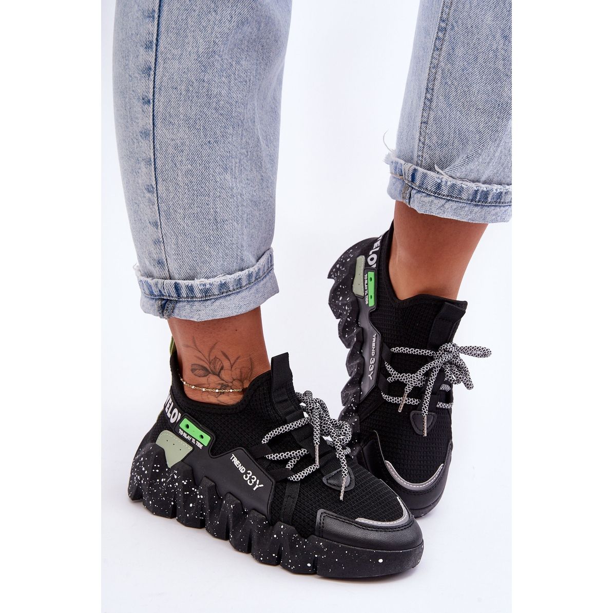 A tornacipők slip-on szabásúak, így könnyű felvenni, a kiegészítő fűzés pedig tökéletes illeszkedést tesz lehetővé a lábfejhez. Masszív, 5 cm magas platformra szerelve nemcsak elegáns megjelenést, de viselési kényelmet is kínál. A csúszásgátló talp stabilitást garantál még dinamikus tevékenységek során is.