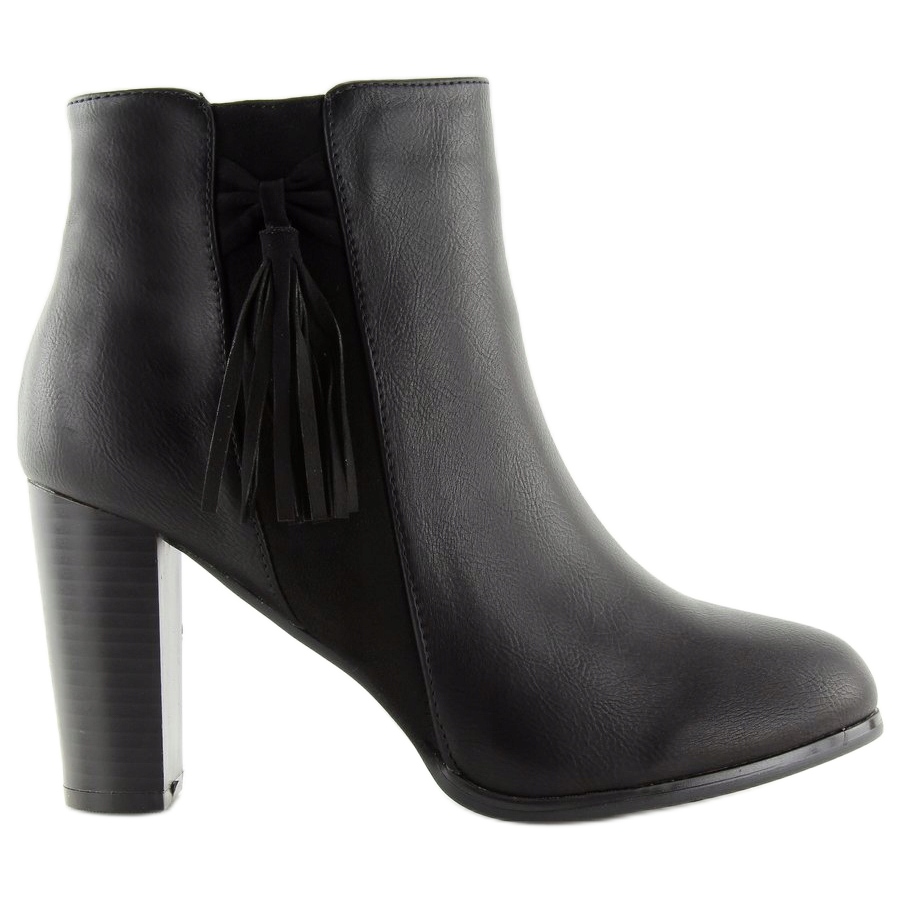 Fedezze fel az eleganciát és a kényelmet egyben a fekete F880 magas sarkú bokacsizmának köszönhetően. Ez a 8,5 cm-es sarokmagasságú női bokacsizma tökéletes kiegészítője bármilyen stílusnak, egyedi bájt kölcsönözve annak. A felsőrész oldalán elhelyezkedő rojtokkal ellátott masni formájú, finom díszítés felhívja a figyelmet és kiegészíti az egészet, hosszú és karcsú lábat varázsolva.
