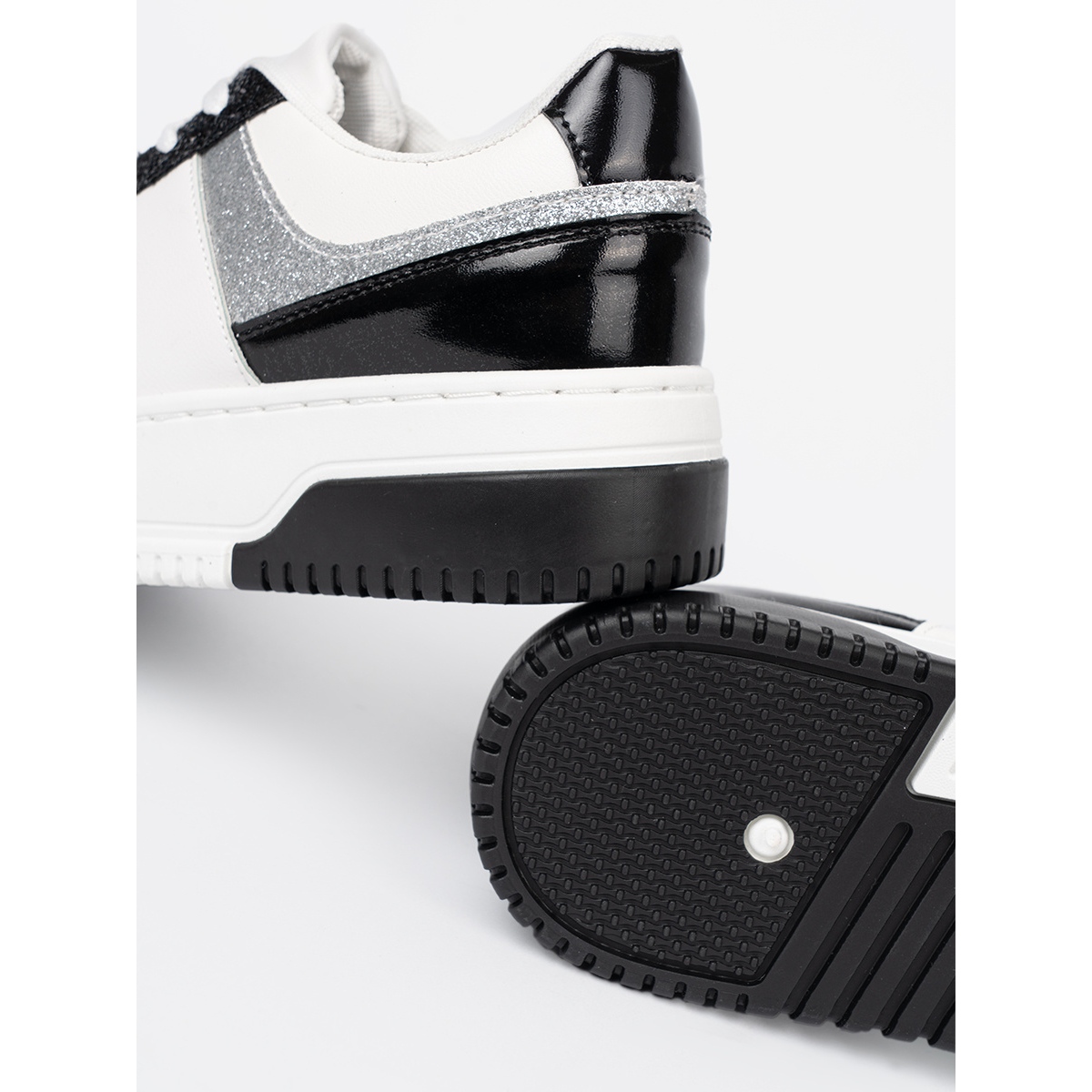 Shelvt Shelvt Fekete -fehér cipők csillogó ezüst részletekkel