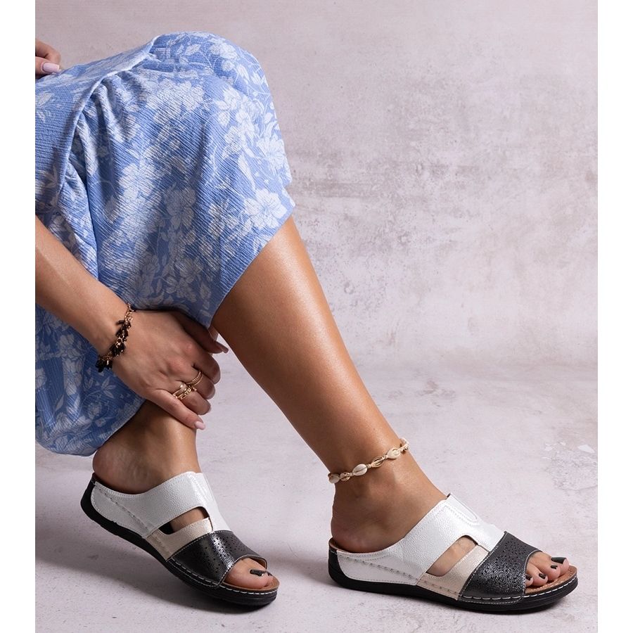 Fedezze fel az eleganciát és a kényelmet a nyáron, a fekete -fehér szárnyaknak köszönhetően a fényes saminarral. Ezek a stílusos flip flopok, amelyek fémes öko bőrből készültek, a modern kialakítást és a legmagasabb kényelmet kombinálják. Gumi talpuk kiváló tapadást biztosít, ami tökéletessé teszi őket mind a nyári sétákhoz, mind a kikapcsolódáshoz a tengerparton.