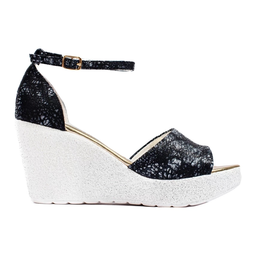 Az elegáns Shelovet ék szandál egy olyan javaslat, amely a klasszikusokat és a modern formatervezést kombinálja. Az elegáns fekete -fehér minta miatt a cipők napi és esti kiránduláshoz vagy ünnepléshez is nagyszerűen működnek.