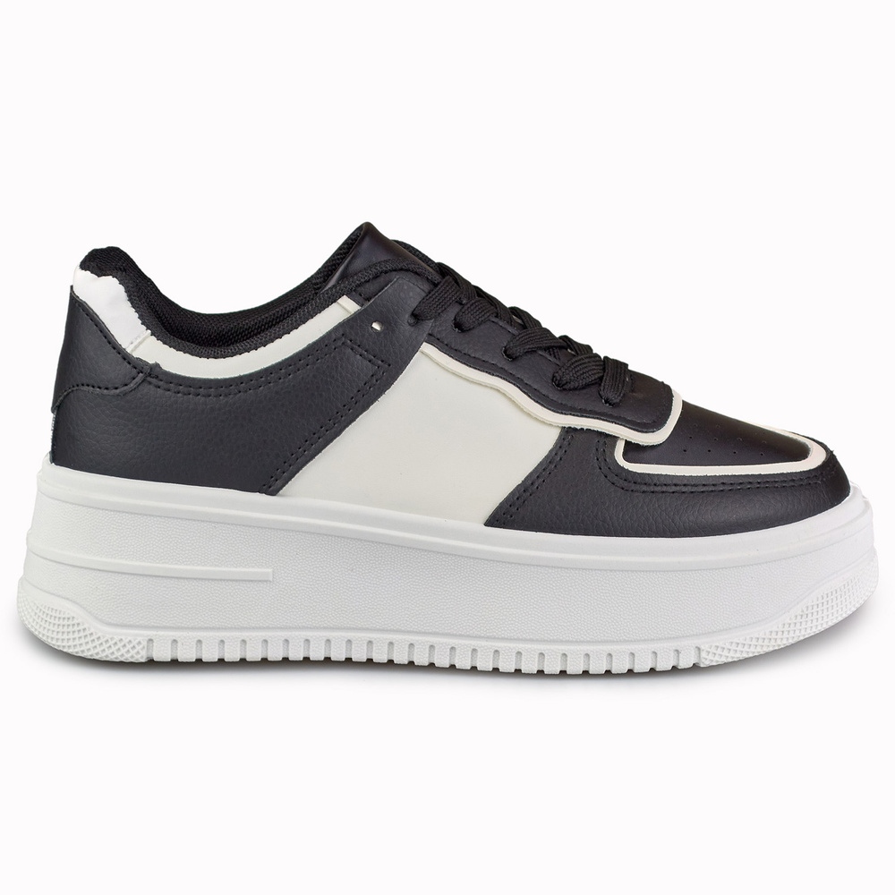 Fekete-fehér sportcipő a platform-ökológiai bőrön, 5 cm-es platformon