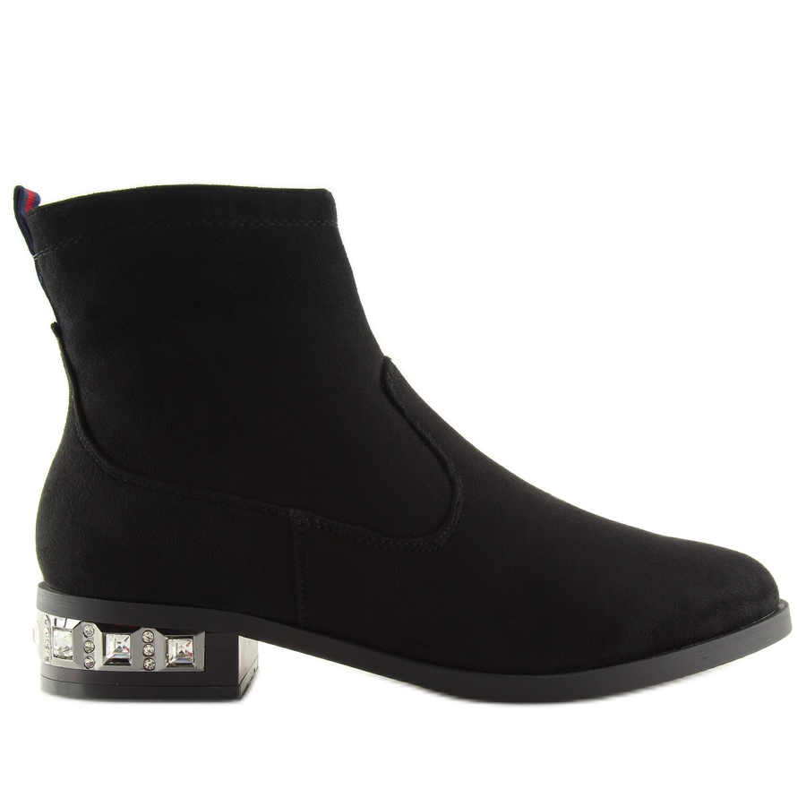 Fekete 168-176 fekete női bokacsizma tökéletes választás azoknak a nőknek, akik értékelik az eleganciát és a kényelmet. A kiváló minőségű ökológiai velúrból készült csizmák a klasszikus szabást ötvözik a modern díszítéssel, a sarkon lévő kövek formájában, amelyek egyedi varázst kölcsönöznek nekik. Univerzális fekete színüknek köszönhetően tökéletesen passzolnak hétköznapi és formálisabb ruhákhoz is.
