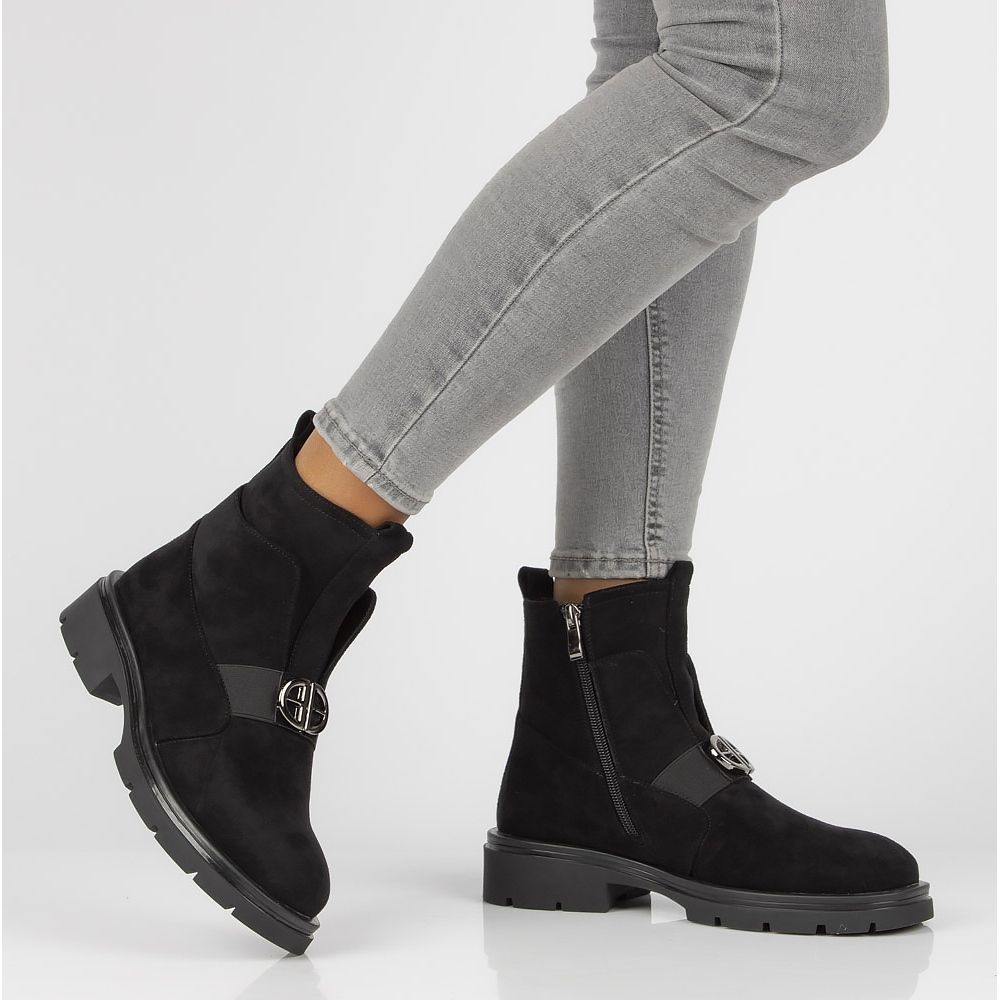 Ezek a női csizmák kerek orrúak és a boka fölé érő magasságúak, ami biztosítja a kényelmet és a stabilitást viselés közben. Az oldalsó cipzár megkönnyíti a fel- és levételt, a szövet bélés pedig egész napos kényelmet biztosít.
