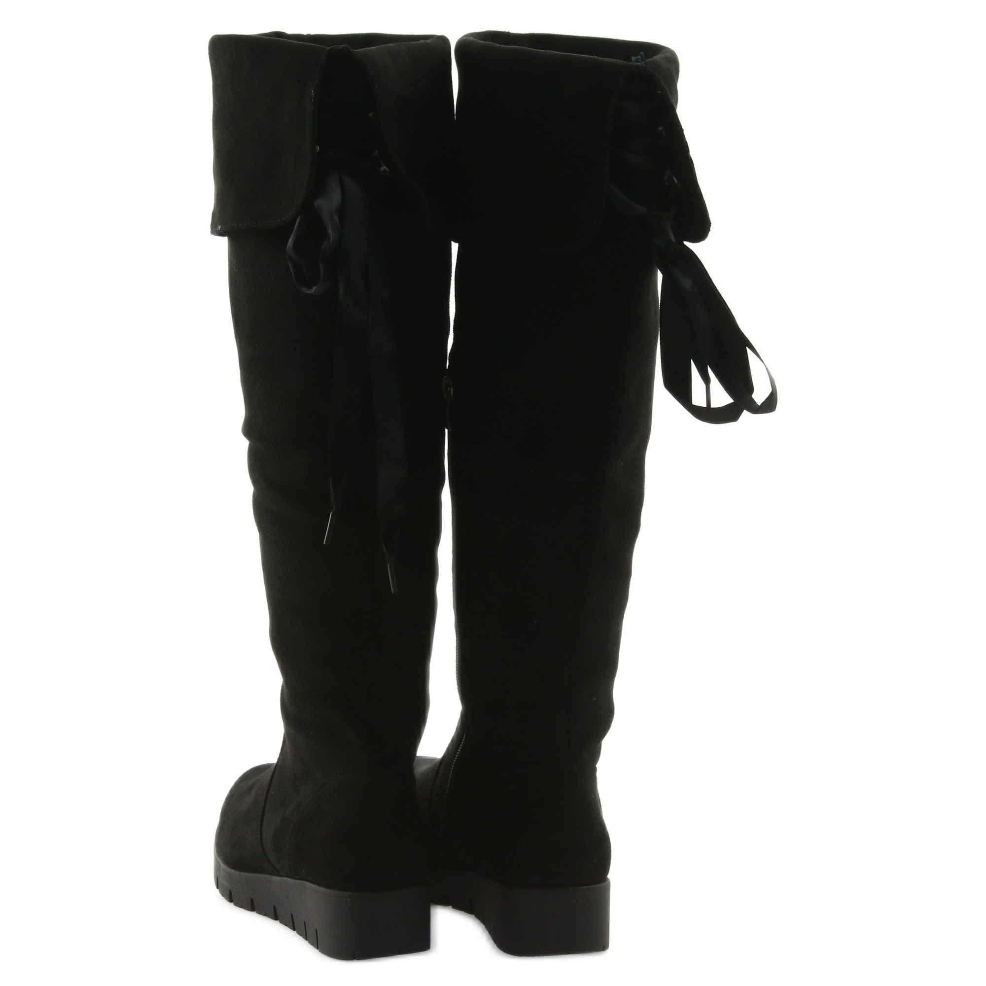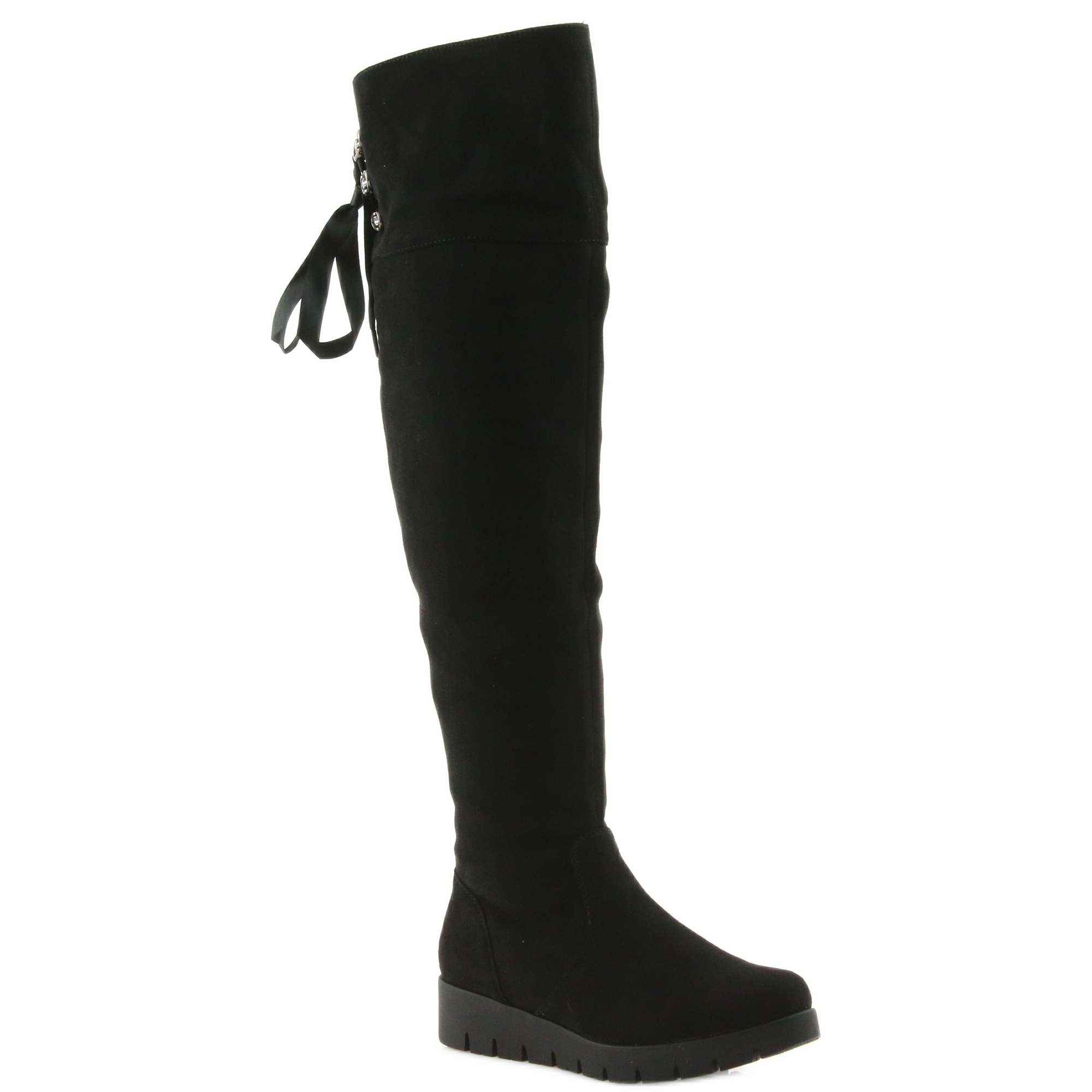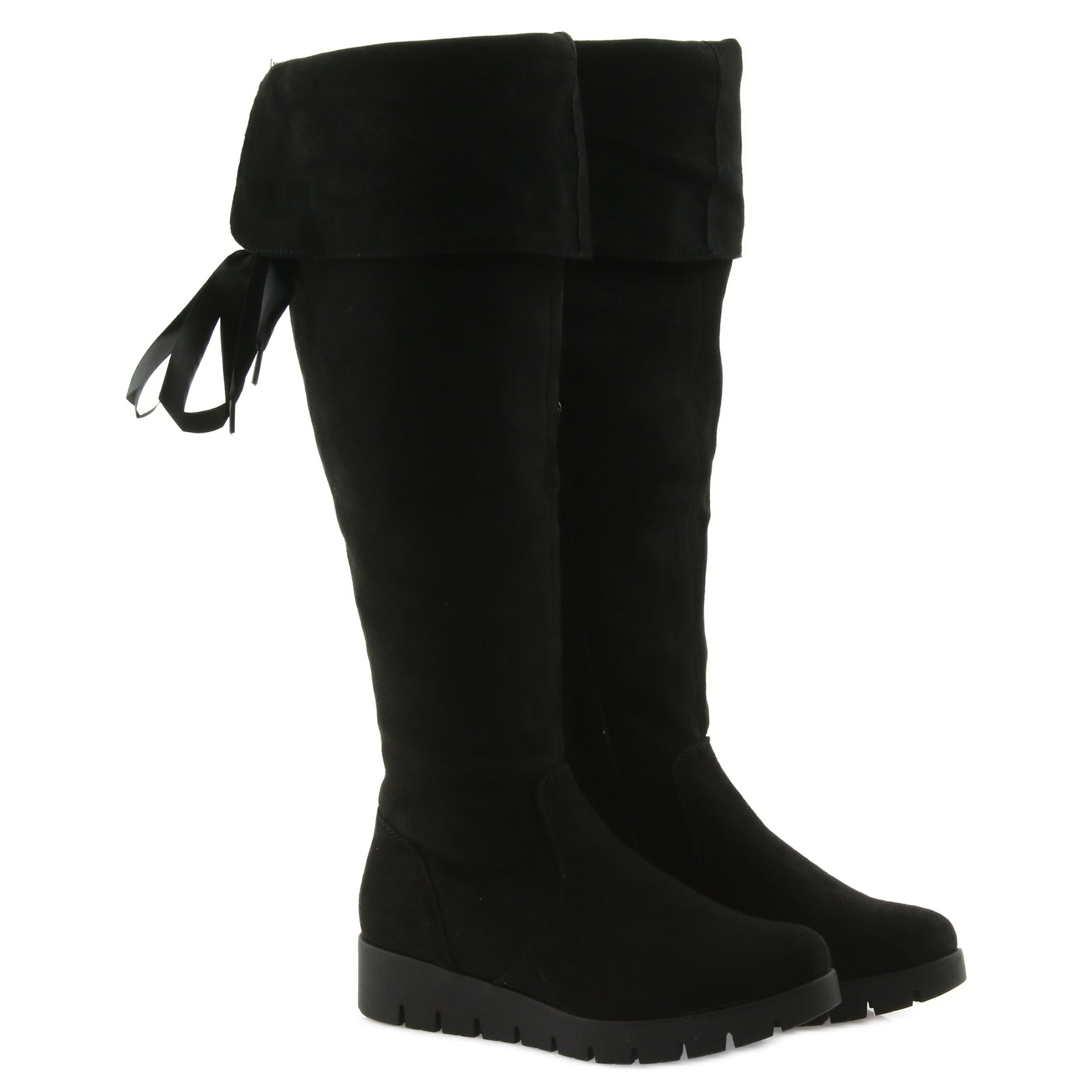 A Filippo 468 hosszú, térdig érő csizma a szezon vitathatatlan slágere, amely az eleganciát a funkcionalitással ötvözi. A kiváló minőségű ökológiai velúrbőrből készült fekete csizma nem csak lenyűgöző megjelenést biztosít, hanem egész napos viselési kényelmet is biztosít. Körülbelül 57 cm-es felső magasságuk tökéletesen illeszkedik a lábhoz, a finom, 3,5 cm magas platform pedig optikai könnyedséget ad és kiemeli az alakot.