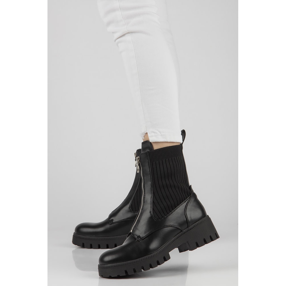 A csizmák kiváló minőségű ökológiai bőrből készültek, így nem csak tartósak, de környezetbarátak is. A boka feletti 17 cm-es felső magasság és a kerek orr garantálja a mozgás szabadságát, a cipzár pedig megkönnyíti a cipő fel- és levételét.