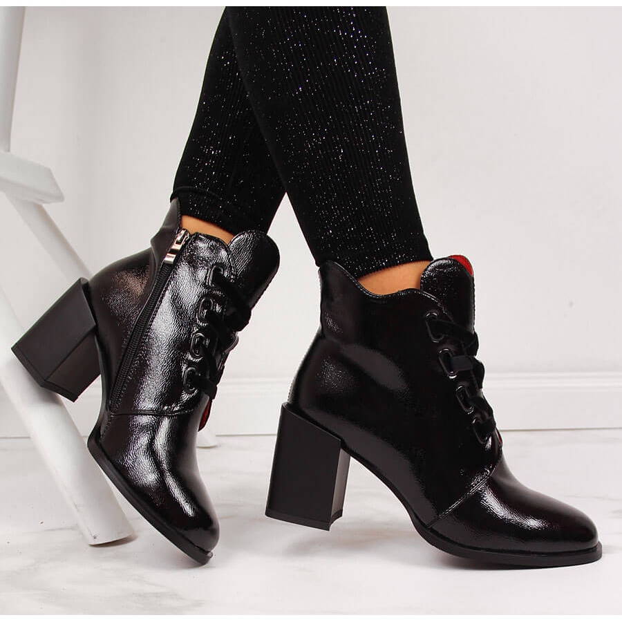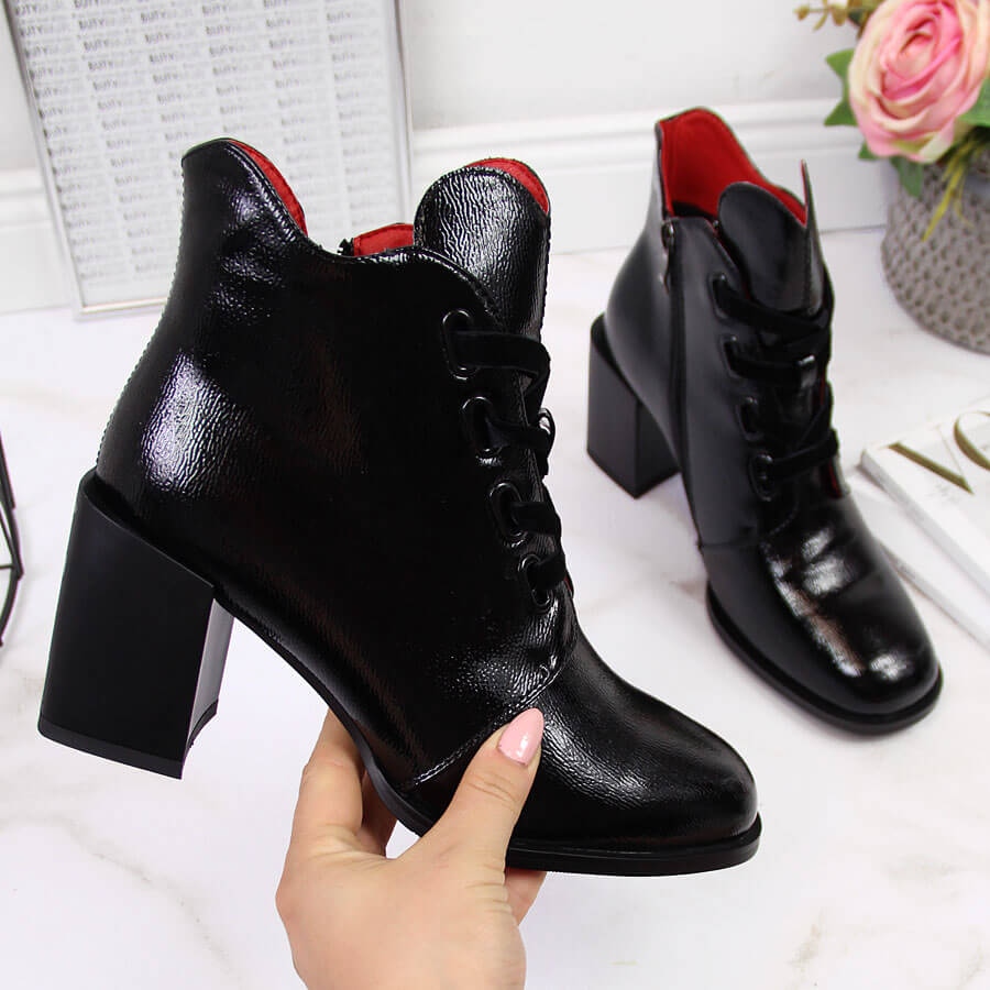 Filippo Fekete Filippo lakkozott női csizma dekoratív sarokkal