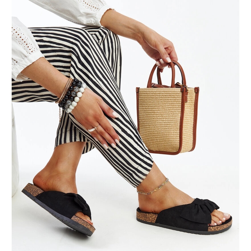 A DF858 modellt elegáns masni jellemzi, amely nőies bájt kölcsönöz neki. A kerek orr és a magassarkú hiánya praktikussá és kényelmessé teszi a papucsokat, amelyek tökéletesek mindennapi kirándulásokhoz és nyári baráti találkozókhoz. Ökológiai velúrbőrből készültek, klasszikus fekete színben stílusosan néznek ki, amely könnyedén passzol minden nyári stílushoz.