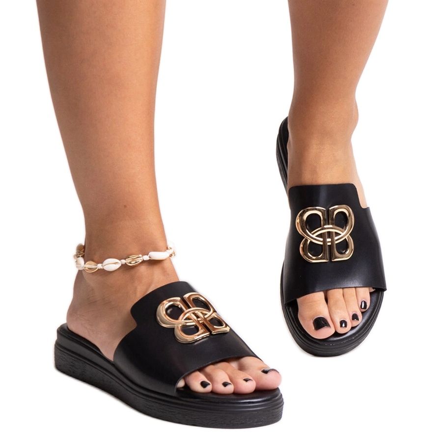 - Modell: MC3832-01 Fekete flip-flop arany díszítéssel