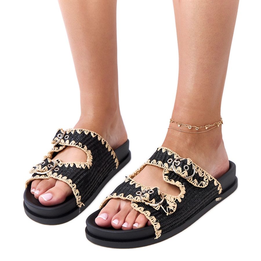 Fedezze fel a kényelmet és a stílust nyáron a Sameli csatokkal szőtt szárnyaknak köszönhetően. Ezek az elegáns fekete papucsok nagyszerű választás a modern nők számára, akik értékelik az alkalmi, de ugyanakkor divatos megjelenést.