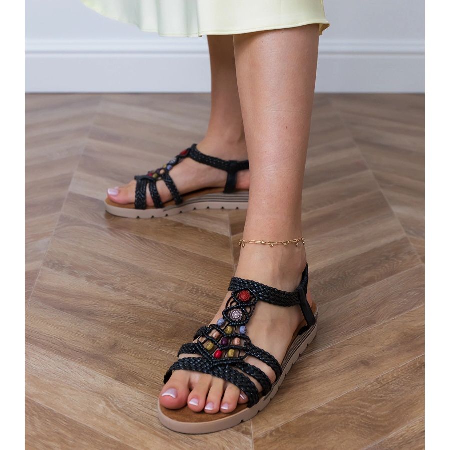 Részletek: Fekete fonott szandál gyöngyökkel díszítve