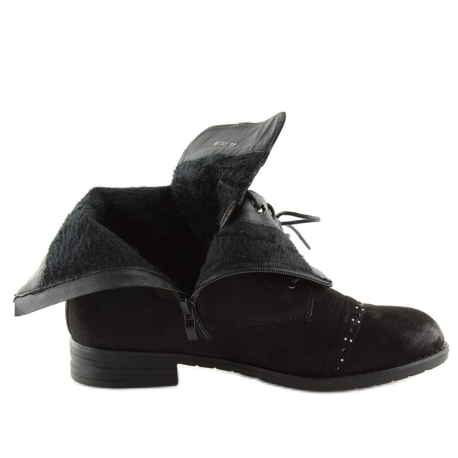 Részletek: Fekete fűzős csizma W312 Fekete