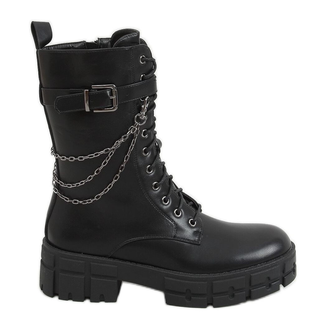 A fekete, sima felület és a lenyűgöző lánc medál és csat egyedi karaktert ad nekik, amely tökéletes mind az alkalmi, mind az elegánsabb stílusokhoz. A csizmák belseje finom szőrmével van bélelve, így a hidegebb napokon is kényelmes viselet.