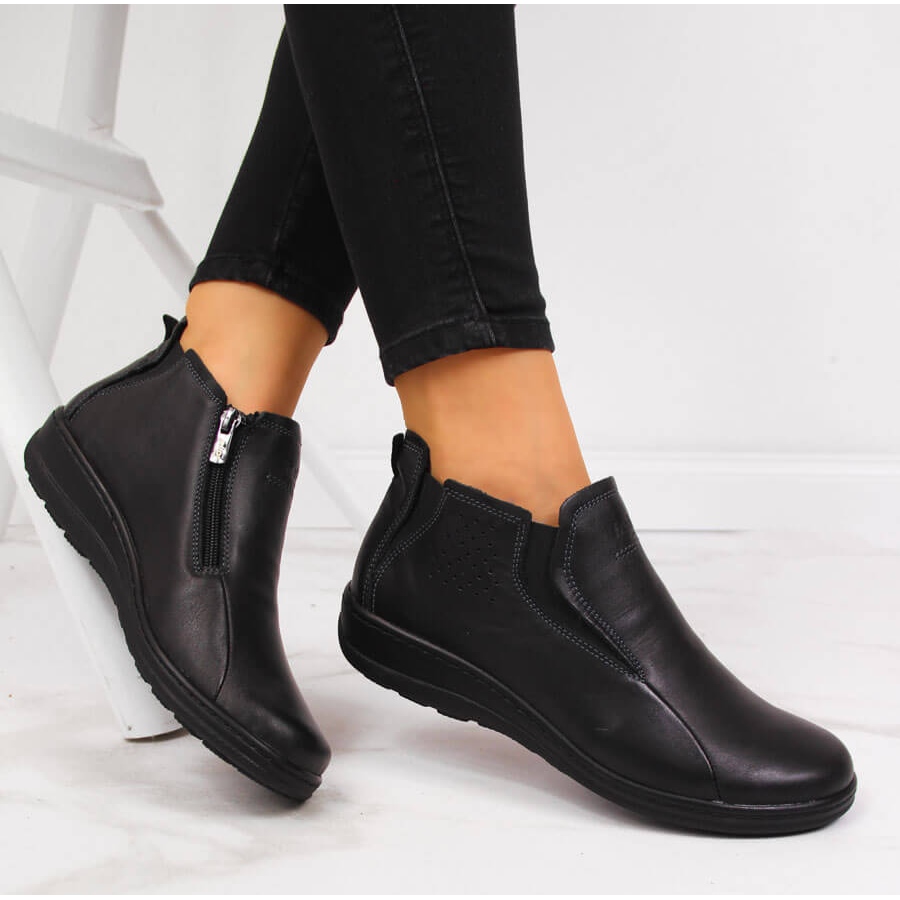 Részletek: Fekete Helios 566 kényelmes bőr női csizma