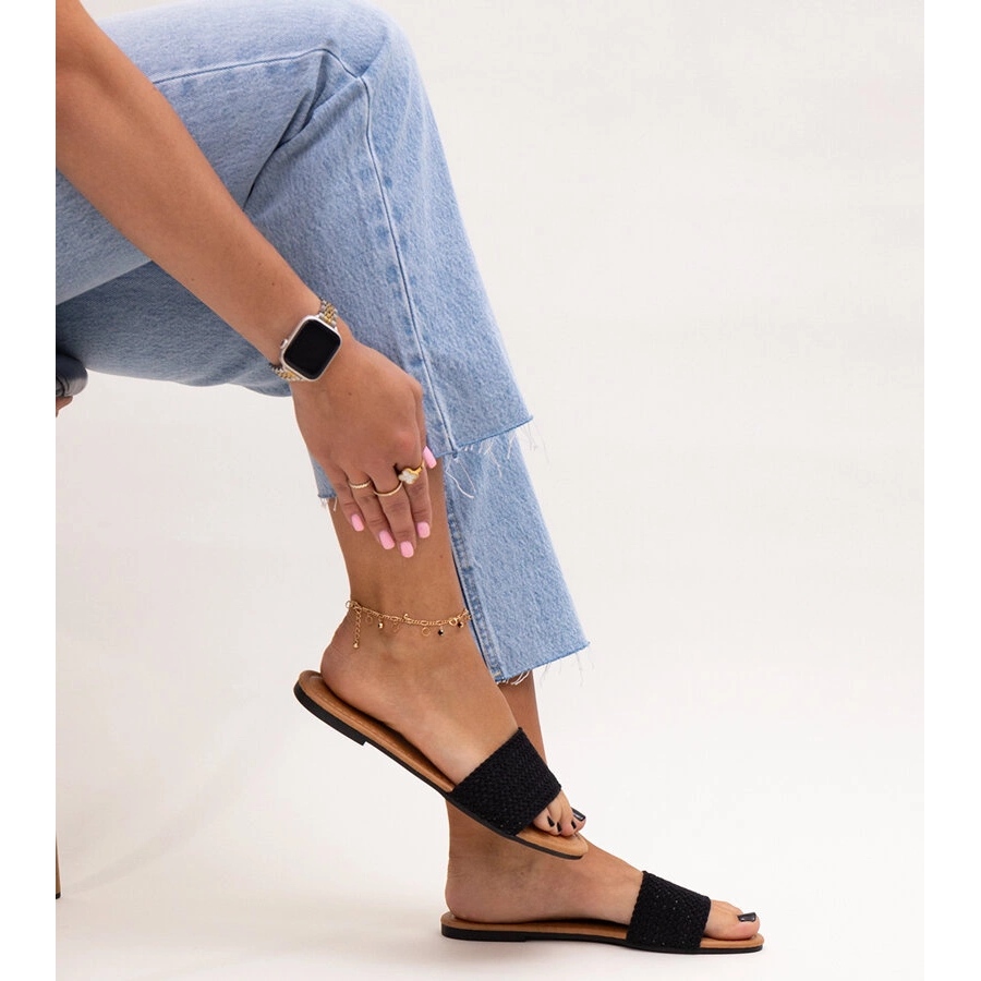 Kiváló minőségű gumiból készülnek, megfelelő rugalmasságot és tartósságot biztosítanak, és a kerek lábujj könnyedséget és modernitást biztosít számukra. A visszafogott fekete színek miatt a papucsok könnyen kombinálhatók a különféle nyári stilizációkkal, a levegős ruháktól a rövidnadrágig.