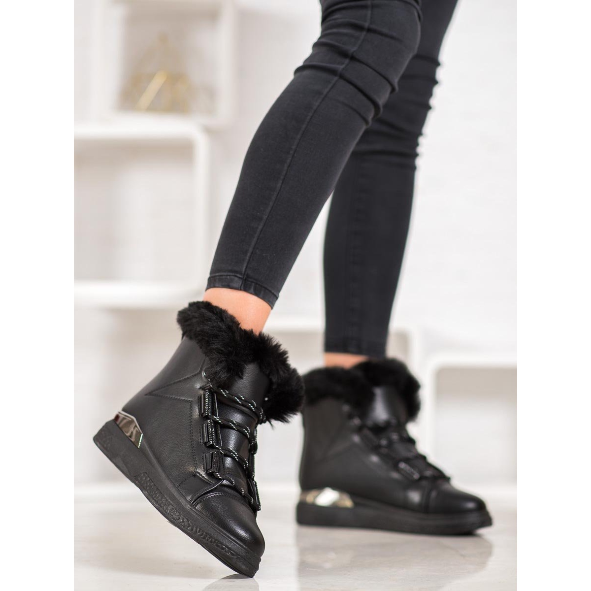 A hócsizmák további előnye, hogy a fűzős rögzítésnek köszönhetően könnyen a lábhoz igazítható. A fekete színnek köszönhetően ezek a cipők tökéletesen passzolnak sok téli stílushoz, az alkalmitól az elegánsabbig.