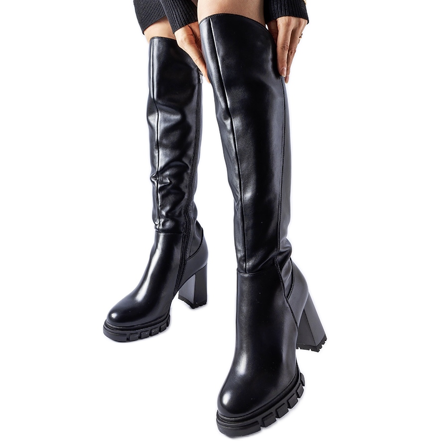 Inna marka Fekete hosszú, meleg magas sarkú csizma