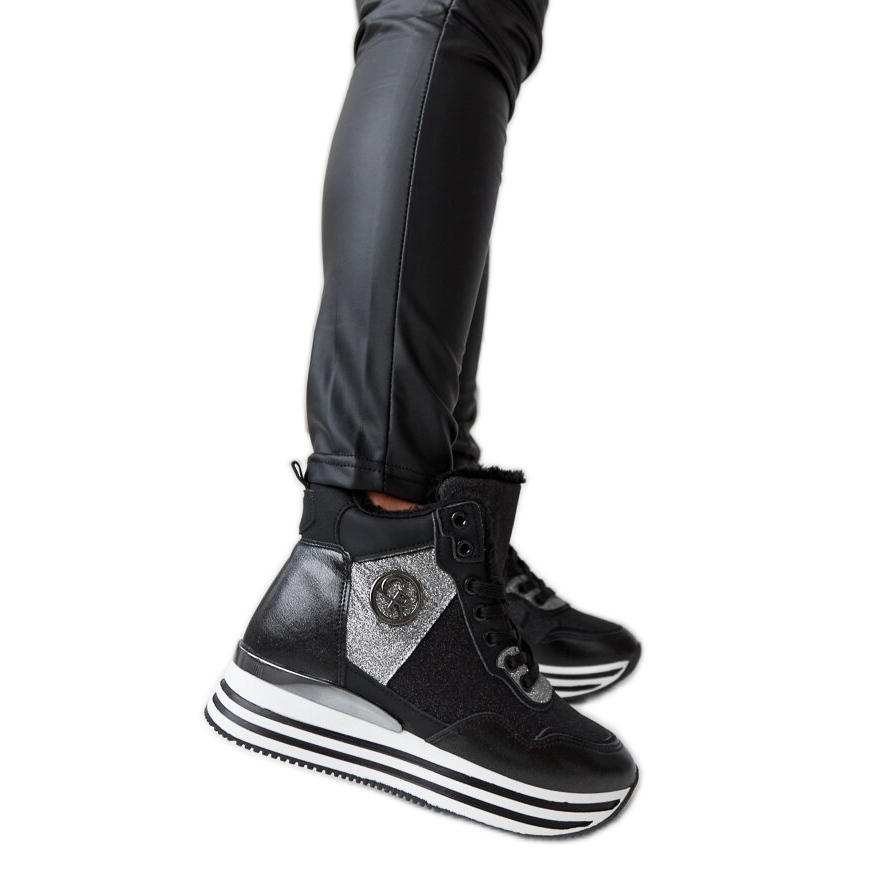 Inna marka Fekete hőszigetelt tornacipő Deleon csillámmal