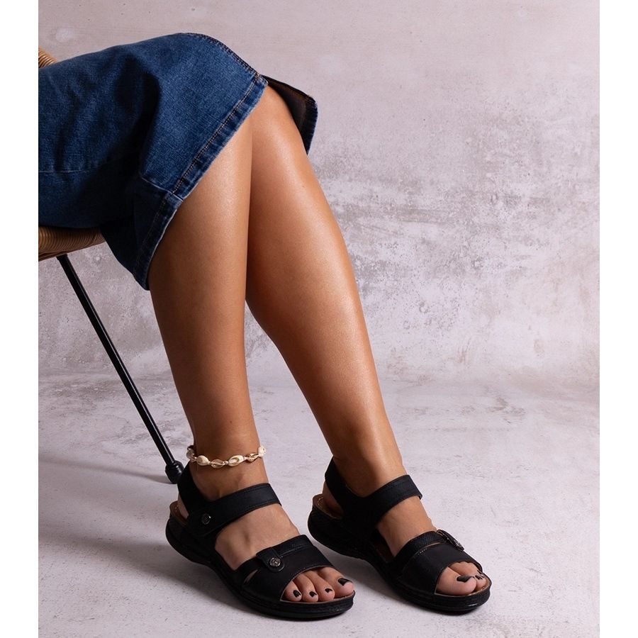 Az 5 cm -es platform magasságával a HURI szandál nemcsak a lábak optikai meghosszabbítását biztosítja, hanem az egész nap viselésének kényelmét is. A klasszikus vágás orr és tépőzáras rögzítés megkönnyíti őket, és tökéletesen alkalmazkodnak bármely lábhoz.