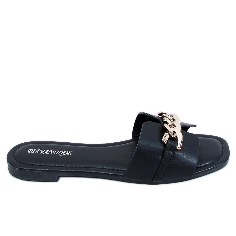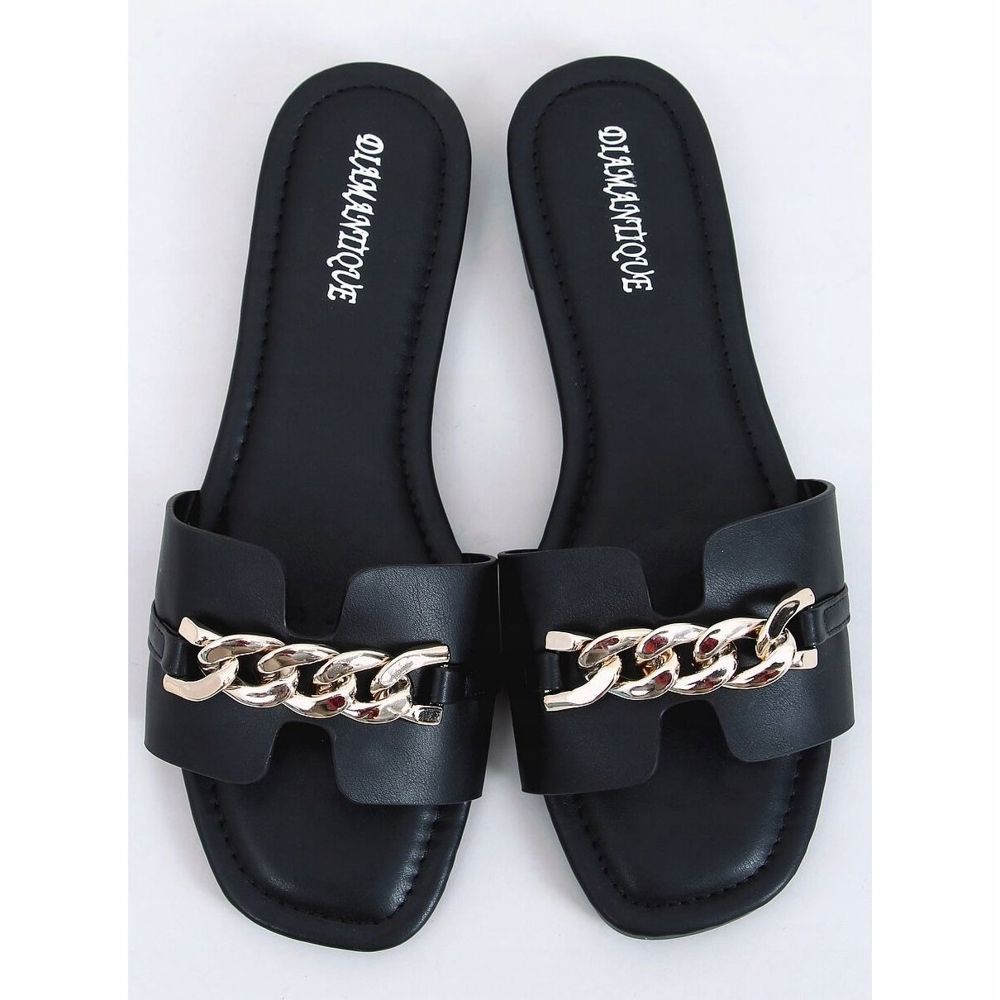 Inna marka Fekete HY23-01 Fekete papucs lánccal