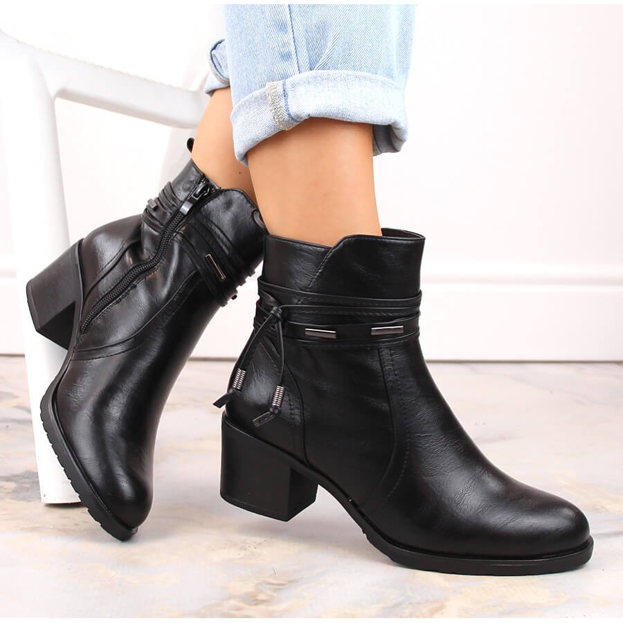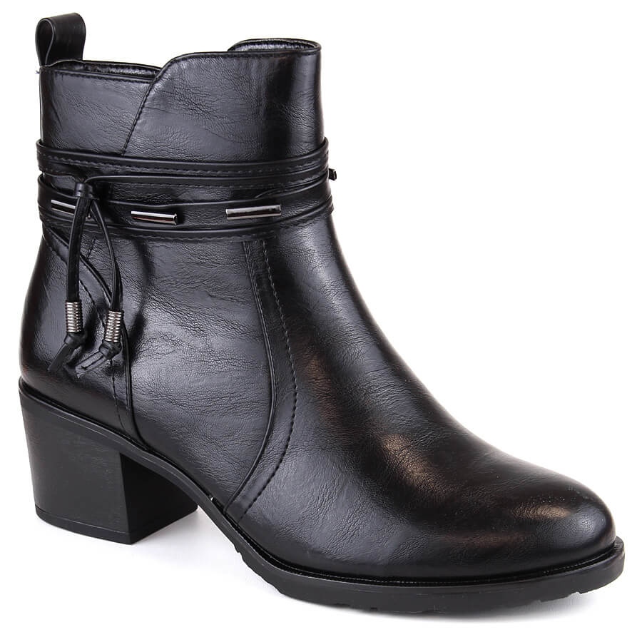 Jezzi Fekete Jezzi hőszigetelt női magas sarkú bokacsizma díszítéssel