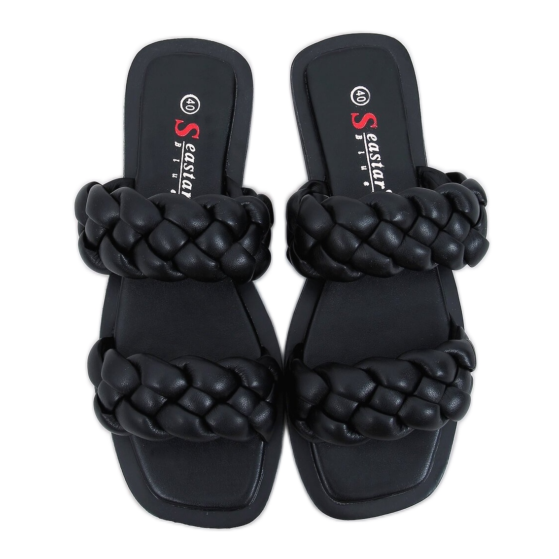 Inna marka Fekete JH200 Fekete papucs fonott csíkokkal