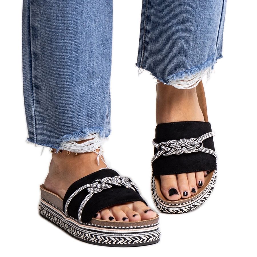 Részletek: Fekete, Kamiliana cirkóniákkal díszített papucs
