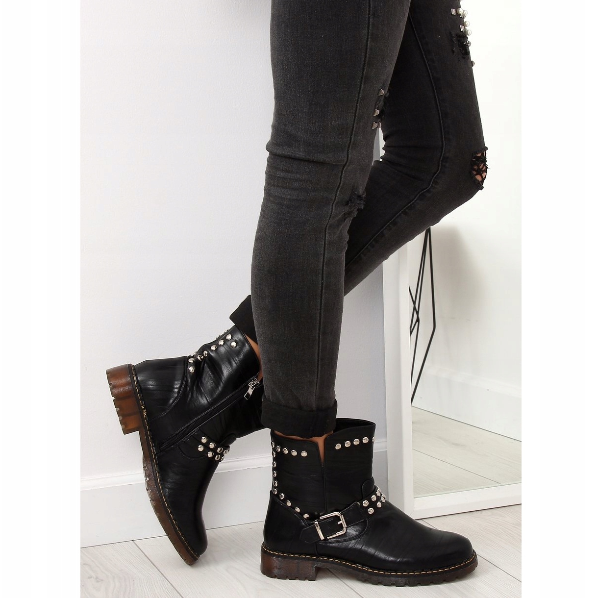 Fedezze fel új kedvenc A-30 Black katonai csizmáit – a stílus és a kényelem tökéletes kombinációját! Ezek a szemet gyönyörködtető női lapos csizmák olyan eredeti díszítőelemekkel hívják fel magára a figyelmet, mint a szegecsek és a talp mentén gondosan kidolgozott varrások. Nekik köszönhetően minden stílus egyedi karaktert kap, és biztosan kitűnik a tömegből.