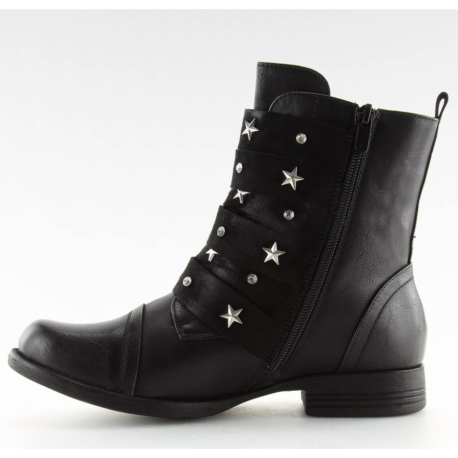 E csizmák egyik jellegzetes eleme a lenyűgöző gallér, amelyet szegecsekkel, csillagokkal és kövekkel díszítettek, amelyek egyedi karaktert adnak. Ideális ajánlat azoknak a nőknek, akik szeretnének kitűnni a tömegből. Az oldalán található praktikus cipzárnak köszönhetően a cipő fel- és levétele rendkívül egyszerűvé és kényelmessé válik.