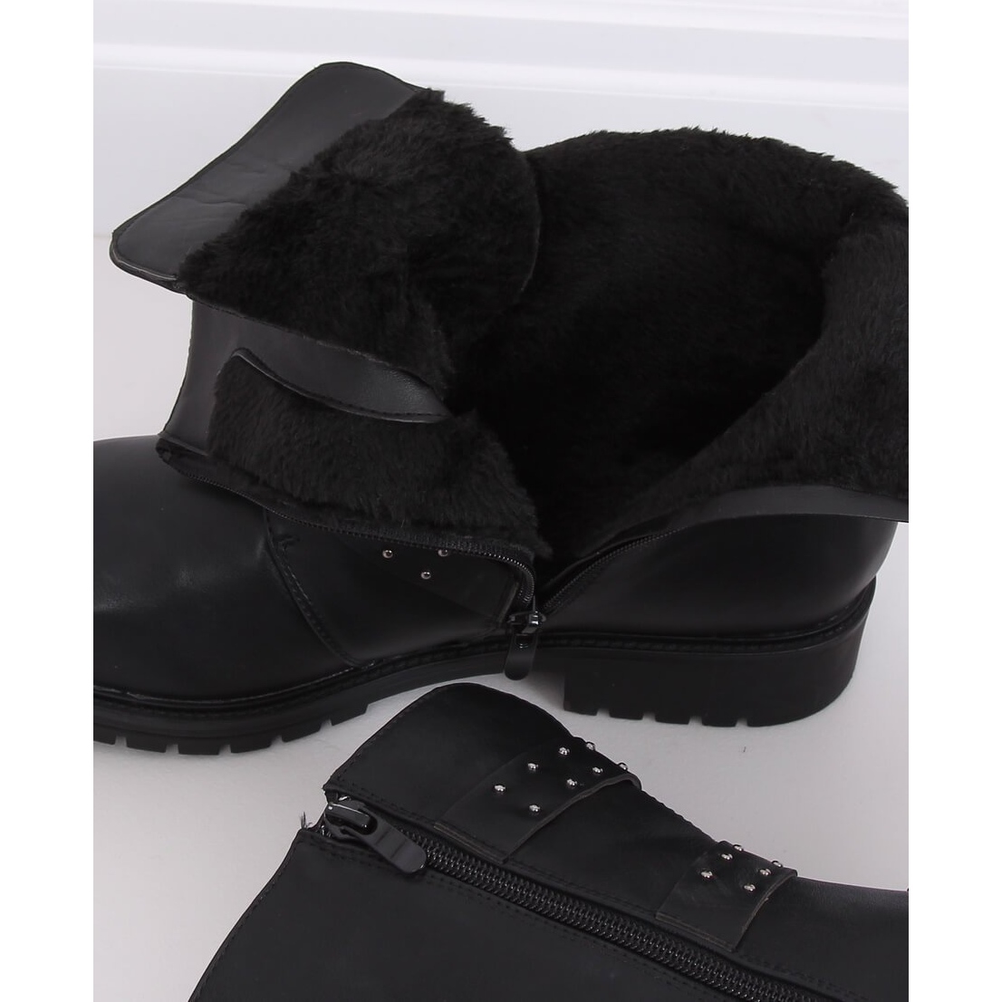 Fekete szigetelt katonai csizma 1952-30 Fekete ideális ajánlat azoknak a nőknek, akik szeretnék ötvözni a divatot a kényelemmel és a funkcionalitással. Ez a rendkívül stílusos, katonai stílusú csizma minden gardróbban megállja a helyét. Ökológiai bőrből készültek, amely nem csak az esztétikus megjelenést, hanem a környezet ápolását is garantálja.