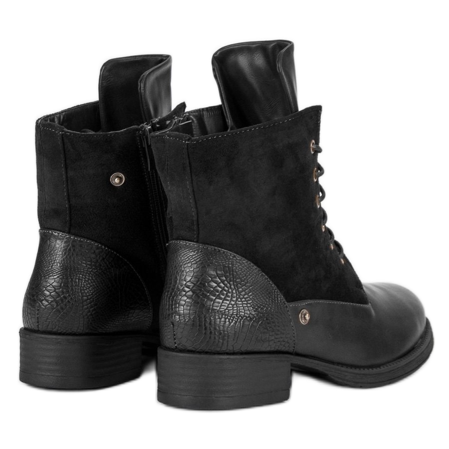 A kiváló minőségű anyagok, például az ökológiai bőr és az ökológiai velúr használatának köszönhetően ez a csizma nem csak divatos, hanem környezetbarát is. A szőrmével bélelt belső kényelemről és melegségről gondoskodik, még a leghidegebb napokon is. A fekete motoros csizmák praktikus cipzárral és kiegészítő fűzővel vannak felszerelve, ami megkönnyíti a felvehetőséget és a lábra való illeszkedést.