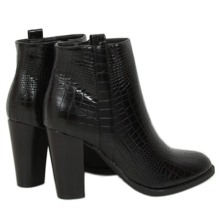 Rendkívül stílusos és elegáns fekete magas sarkú bokacsizmákat mutatunk be, amelyek tökéletesen illeszkednek az aktuális divattrendekhez. A kígyóbőr motívumú modell ideális ajánlat azoknak a nőknek, akik értékelik az eredetiséget és az extravaganciát. A fényes ökológiai bőrből készült kiváló minőségű kidolgozás és a kényelmes oldalsó cipzár nemcsak vonzóvá, de praktikussá is teszi a csizmát a mindennapi használat során.