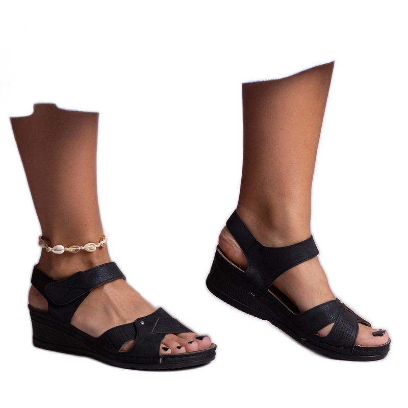 A klasszikus, fekete színeknek és a minimalista vágásnak köszönhetően ezek a szandálok tökéletesen belekeverednek a különféle nyári stilizációkkal. A 6 cm magasságú alacsony ék rendkívül kényelmessé teszi őket, és ugyanakkor adjon hozzá finom magasságot, amelynek köszönhetően a lábak hosszabbnak és karcsúbbnak tűnnek.