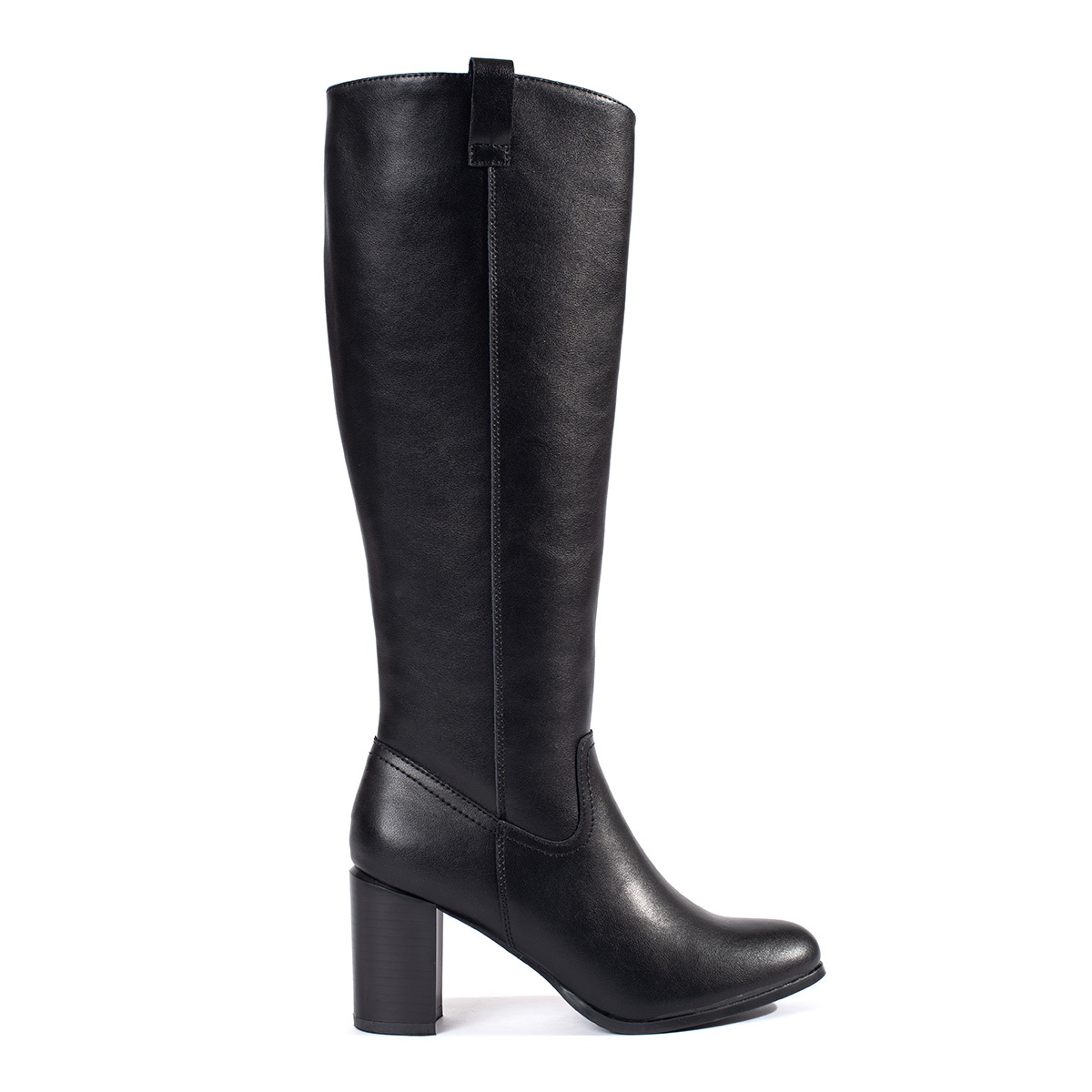 Részletek: Fekete klasszikus bőr női magas sarkú csizma Sergio Leone-tól