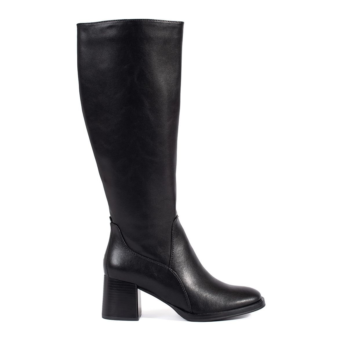 Részletek: Fekete klasszikus bőr női magas sarkú csizma Sergio Leone-tól