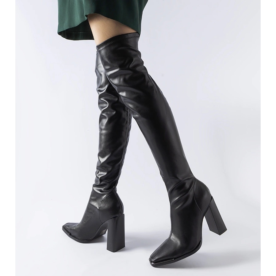 Fekete klasszikus csizma a térd felett - 6028 modell hosszú dugó kozákok