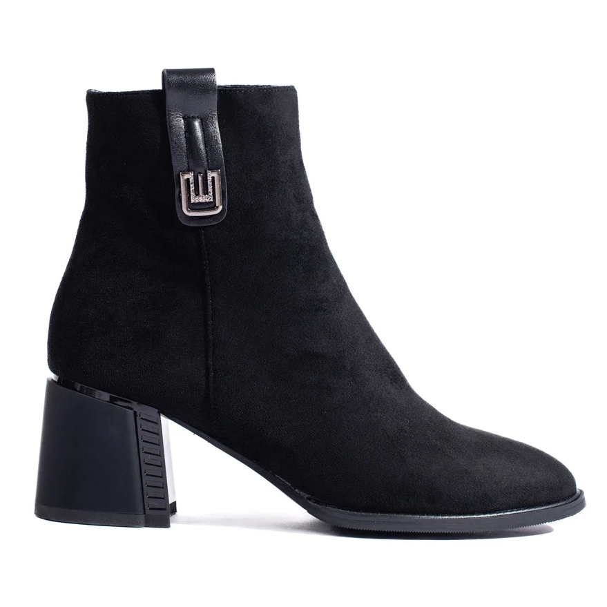 Részletek: Fekete klasszikus Shelovet velúr magas sarkú bokacsizma