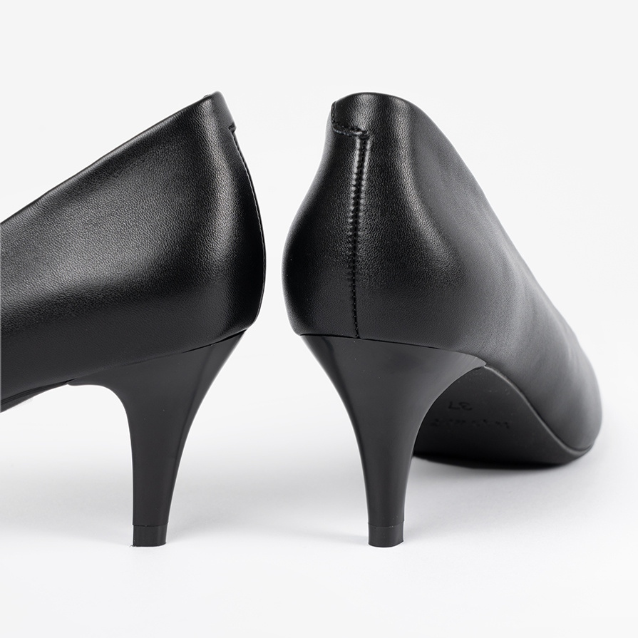 A szivattyúkat egy kerek orr jellemzi, amely kényelmet nyújt. Épített sarok és elegáns 6,5 cm -es magas tűs hozzáadási stílus, így napi és különleges alkalmakkor is tökéletes. A klasszikus fekete színek eltérő stílusokat alkotnak, ami univerzális választássá teszi őket.