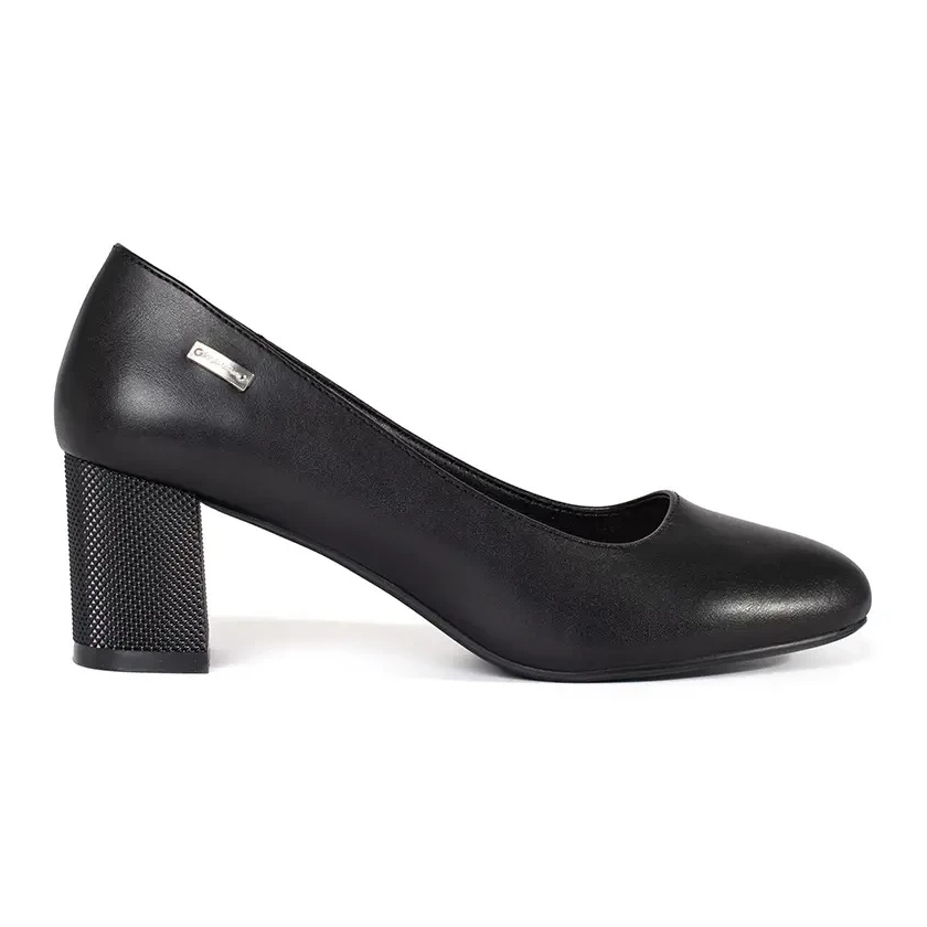 A szivattyúk ökológiai bőrből készülnek kívül, és a természetes bőr belső betétje biztosítja a legnagyobb kényelmet. A sima műanyag talp garantálja a kiváló tapadást a különböző felületeken. A klasszikus fekete szín miatt ezek a szivattyúk tökéletesen keverednek bármilyen stilizálással, stílus és elegancia hozzáadásával.