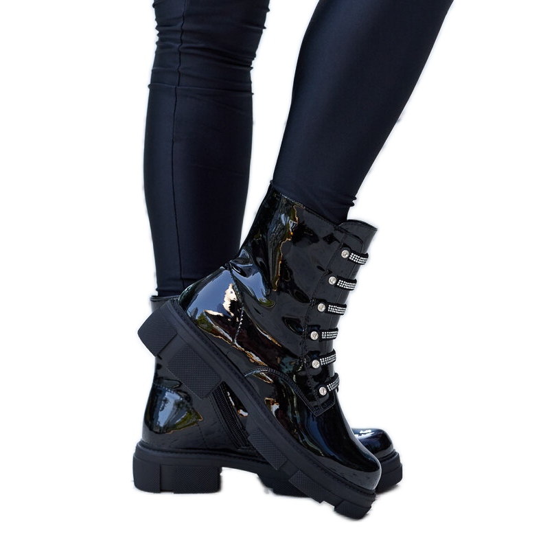 Részletek: Fekete lakkozott bokacsizma Sfaranda strasszokkal