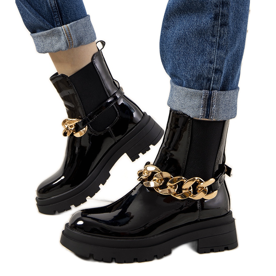 Inna marka Fekete lakkozott bokacsizma Tapia lánccal