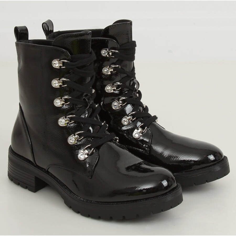 Fedezze fel az egyedi, fekete lakkozott bovver csizmát, a 7982-PA Black - tökéletes választás azoknak a nőknek, akik szeretnének kitűnni a tömegből. Ezek a fűzős bokacsizmák ötvözik az extravagáns és az elegáns stílus bátorságát, a fűzőt díszítő kövek formájában megjelenő csillogó akcentusaik pedig vonzzák a figyelmet, és karaktert adnak minden stílusnak.