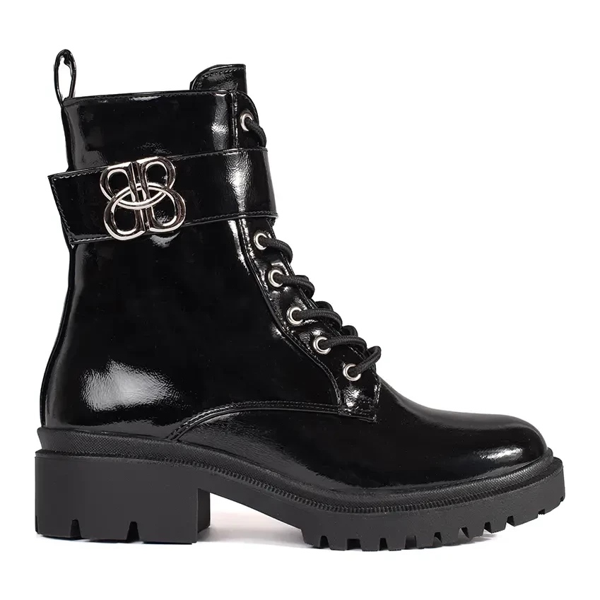 Részletek: Fekete lakkozott csizma női munkavállalók