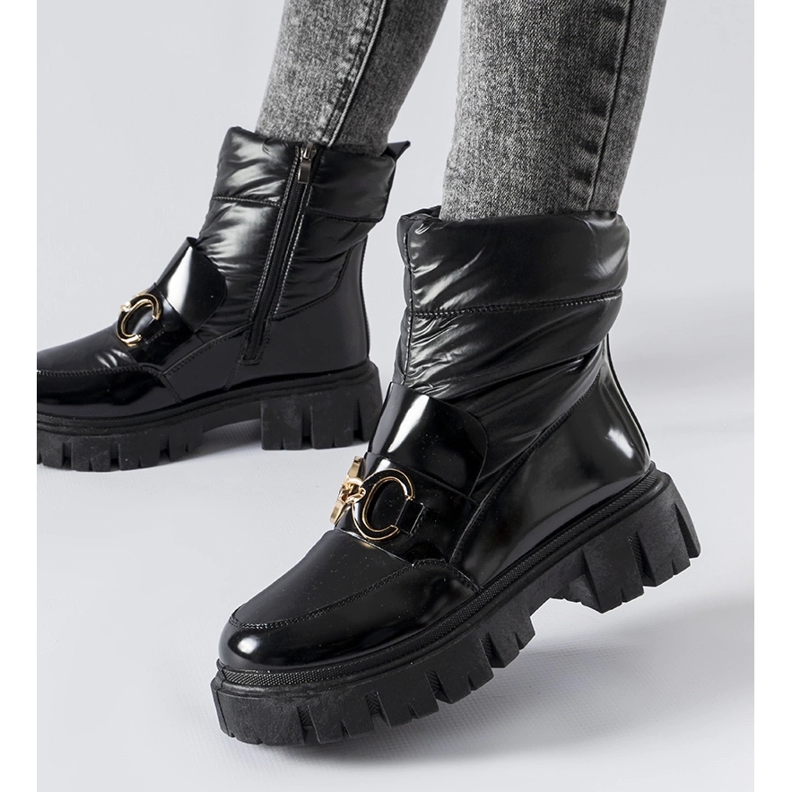 Fekete lakkozott téli hócsizma - elegancia és kényelem a télen