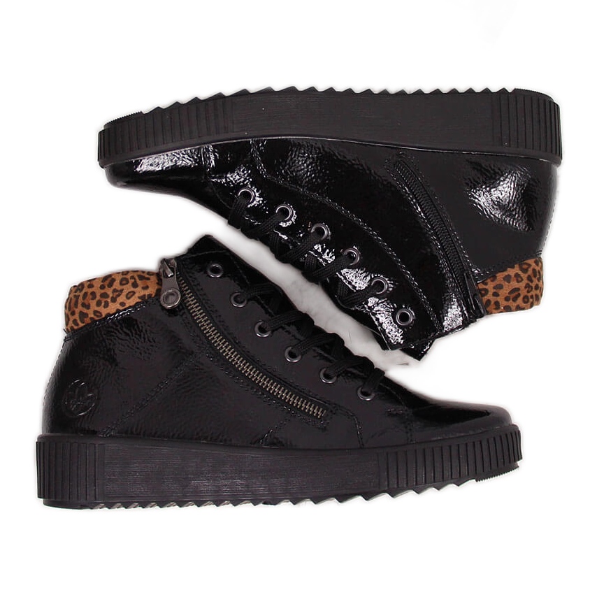 Részletek: Fekete lakkozott női csizma Rieker M6434