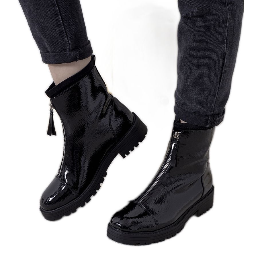A fekete lakkozott női Weiss bokacsizma tökéletes választás a közelgő őszre! Ezek a fenomenális cipők elegáns dizájnjukkal és modern stílusukkal vonzzák a figyelmet. Finom szerkezetű ökológiai lakkbőrből készültek, nem csak esztétikusak, de környezetbarátak is.