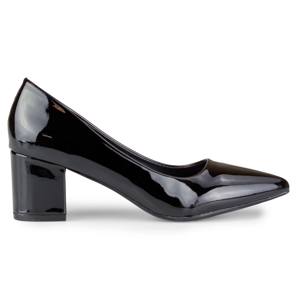 Részletek: Fekete lakkozott pumpák alacsony sarkon